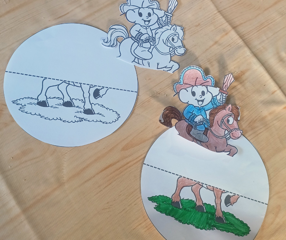 Uma atividade recortável em que os alunos montam Dom Pedro I no cavalo, simulando o momento histórico do Grito da Independência.