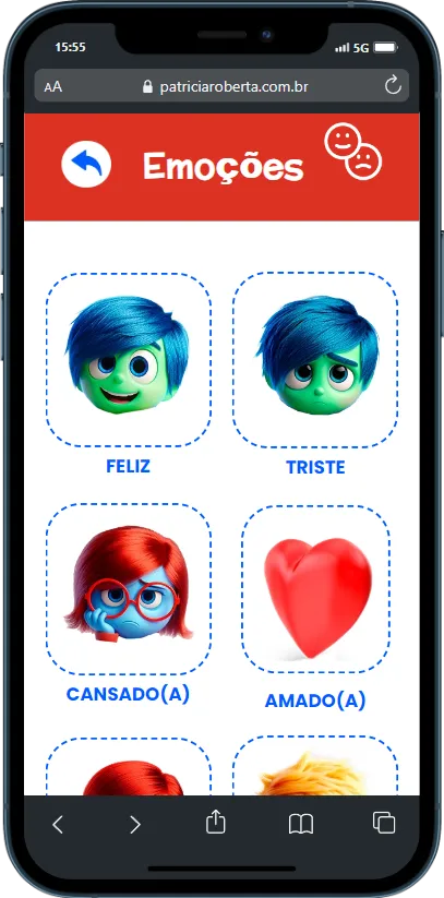 Ajuda a criança a expressar sentimentos como felicidade, tristeza e medo através de cliques simples.