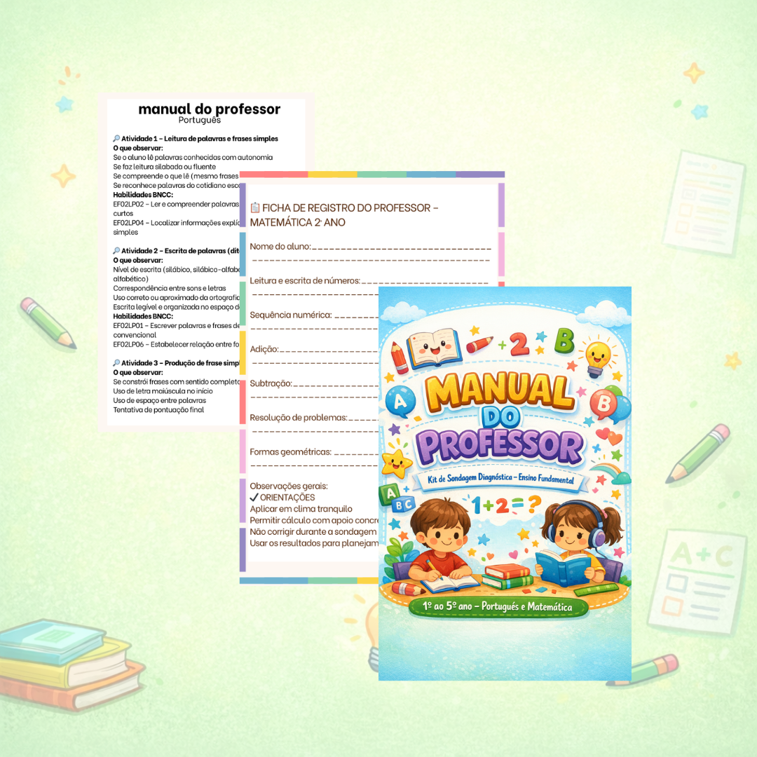 O Kit de Sondagem Diagnóstica – Ensino Fundamental foi criado para ajudar professoras a diagnosticar com clareza, segurança e rapidez o nível de aprendizagem dos alunos do 1ºano, nas áreas de Português e Matemática, totalmente alinhado à BNCC.