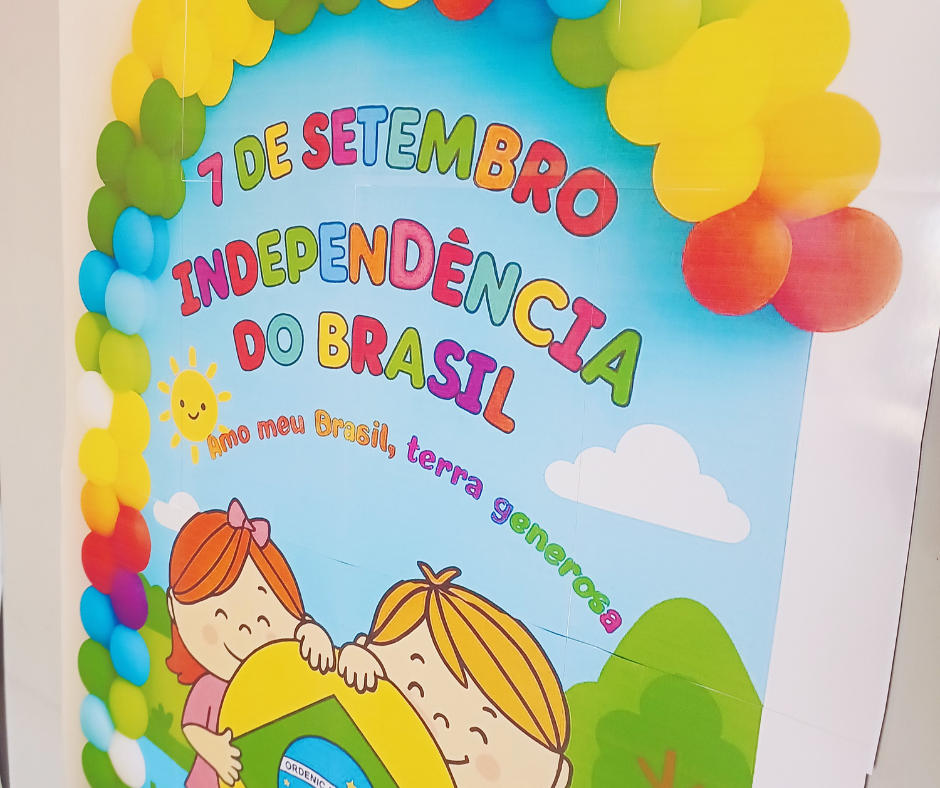 Atividade interativa: espaço no painel para que os alunos possam participar, colando bandeirinhas, escrevendo mensagens de amor ao Brasil ou respondendo a pequenas perguntas sobre a Independência.