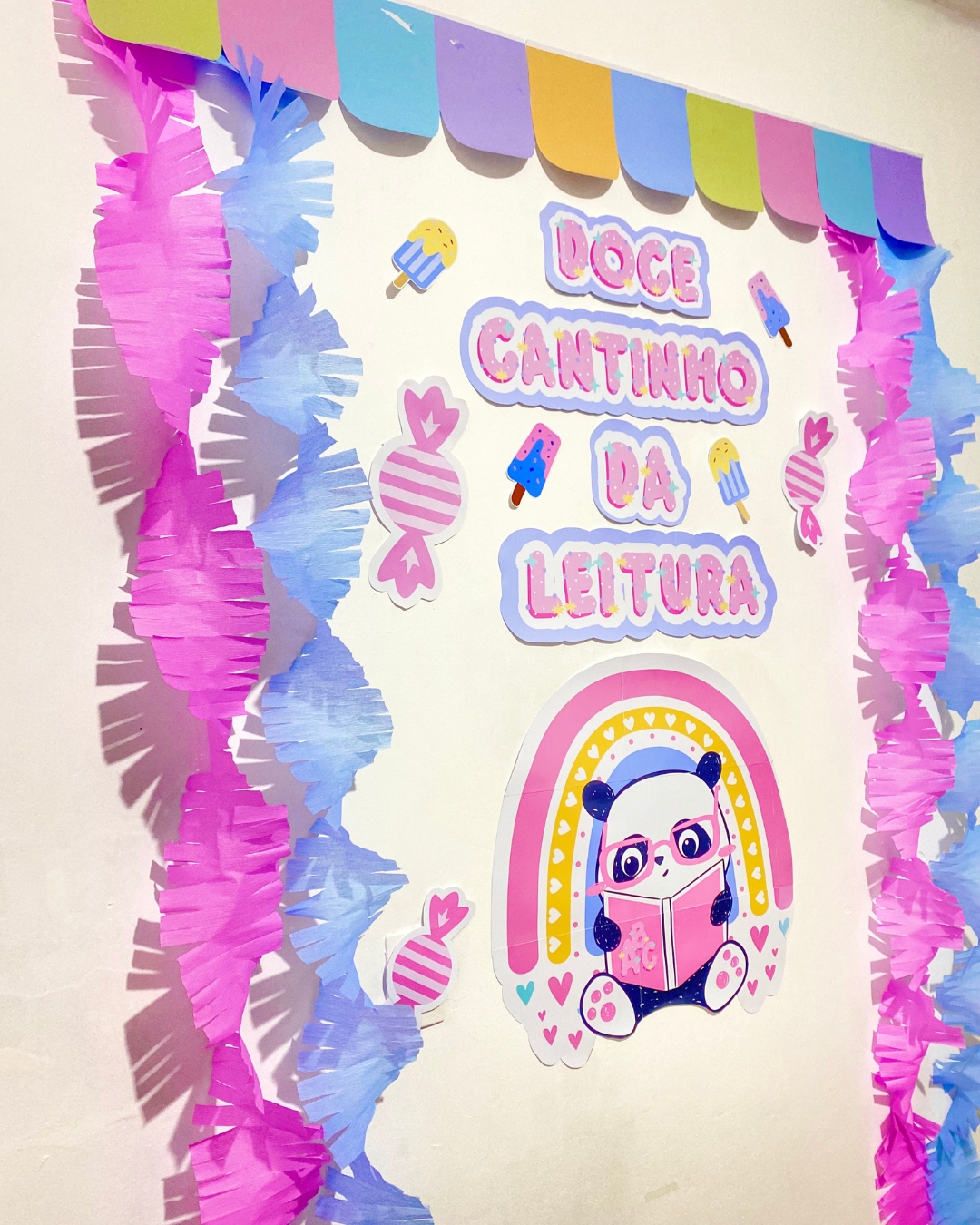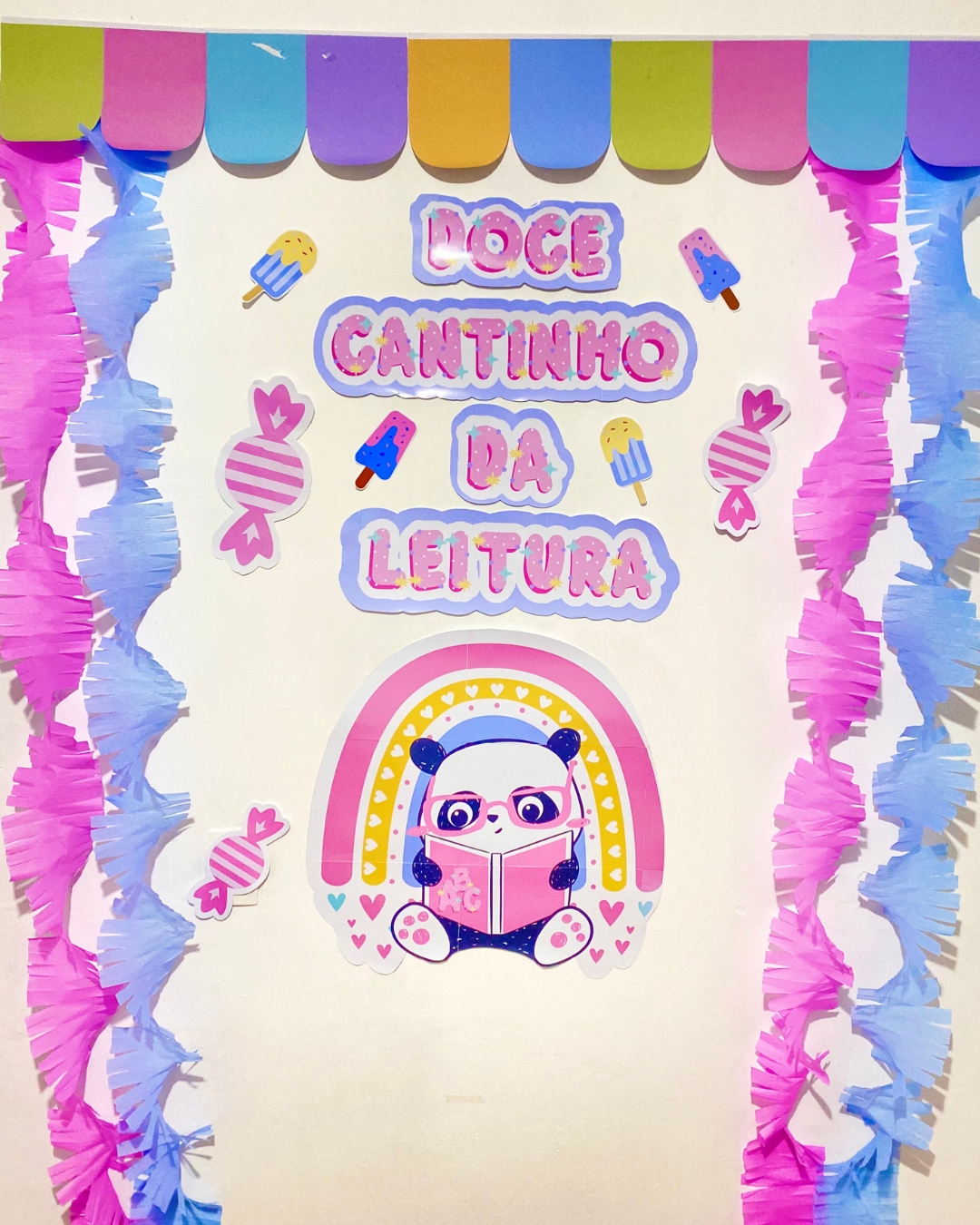 Painel Ampliado Doce Cantinho da Leitura: Um mural colorido e interativo que torna o espaço de