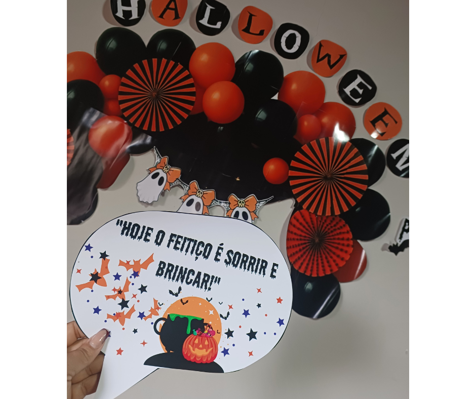 Transforme a decoração da sua sala ou escola em um verdadeiro espetáculo de travessuras e alegria com o Kit Painel do Halloween!