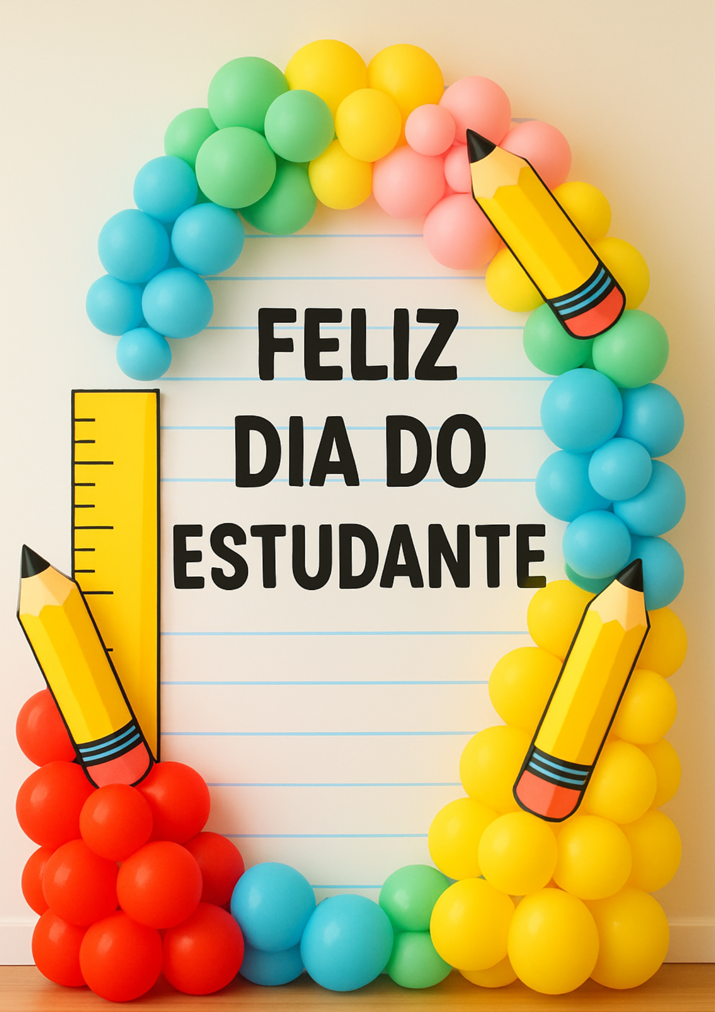 Arquivo digital do painel “Feliz Dia do Estudante” em 3 tamanhos: