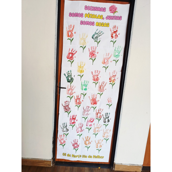 O Painel de Porta – Dia das Mulheres foi pensado para transformar a entrada da sala em um espaço emocionante e acolhedor. A proposta é que cada criança registre a sua mãozinha formando uma linda flor coletiva, simbolizando carinho, gratidão e reconhecimento às mulheres que fazem a diferença em suas vidas. 🌷✨