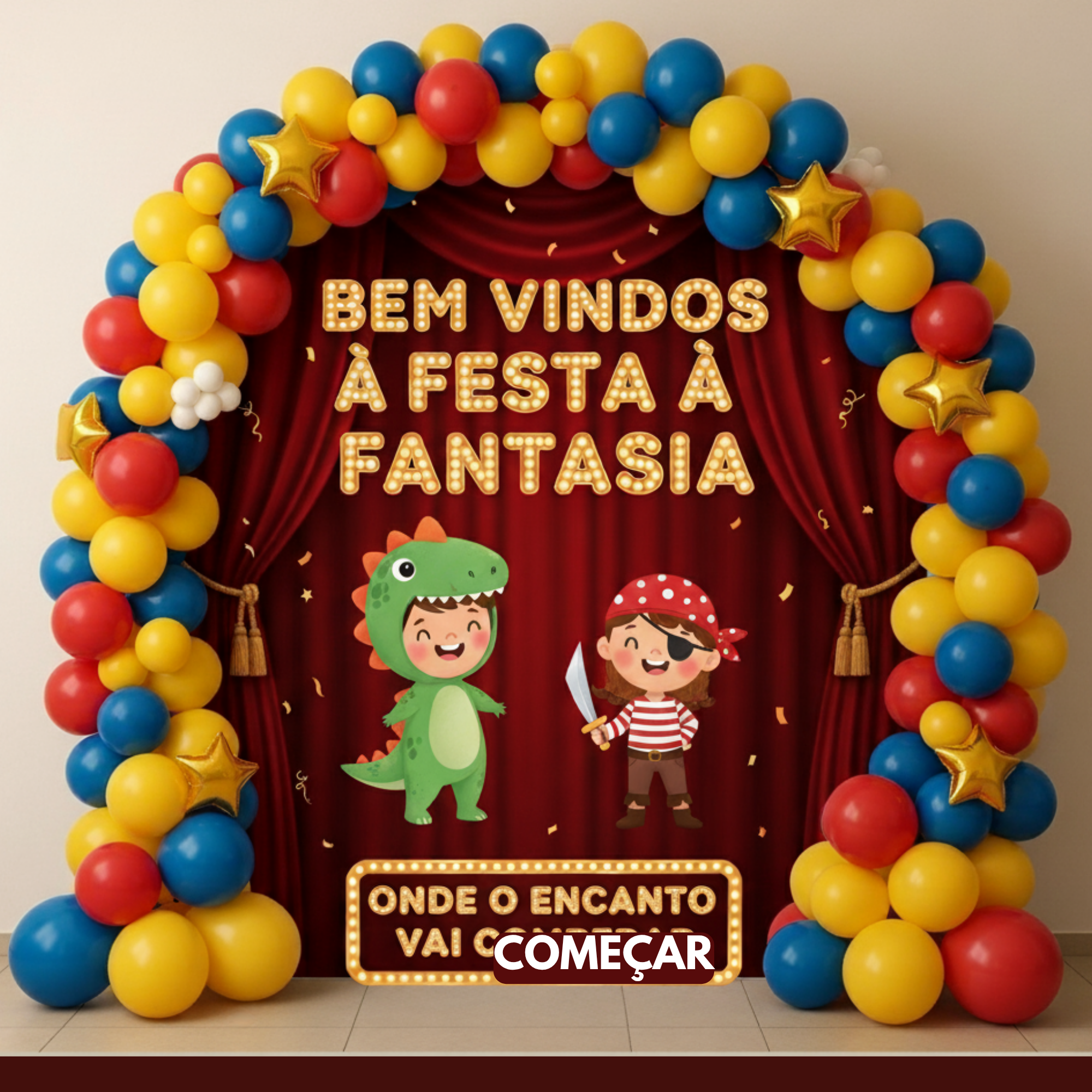 Transforme sua festa à fantasia em um evento ainda mais encantador com este kit superdivertido e colorido, pensado para deixar a decoração pronta em minutos e encantar as crianças!