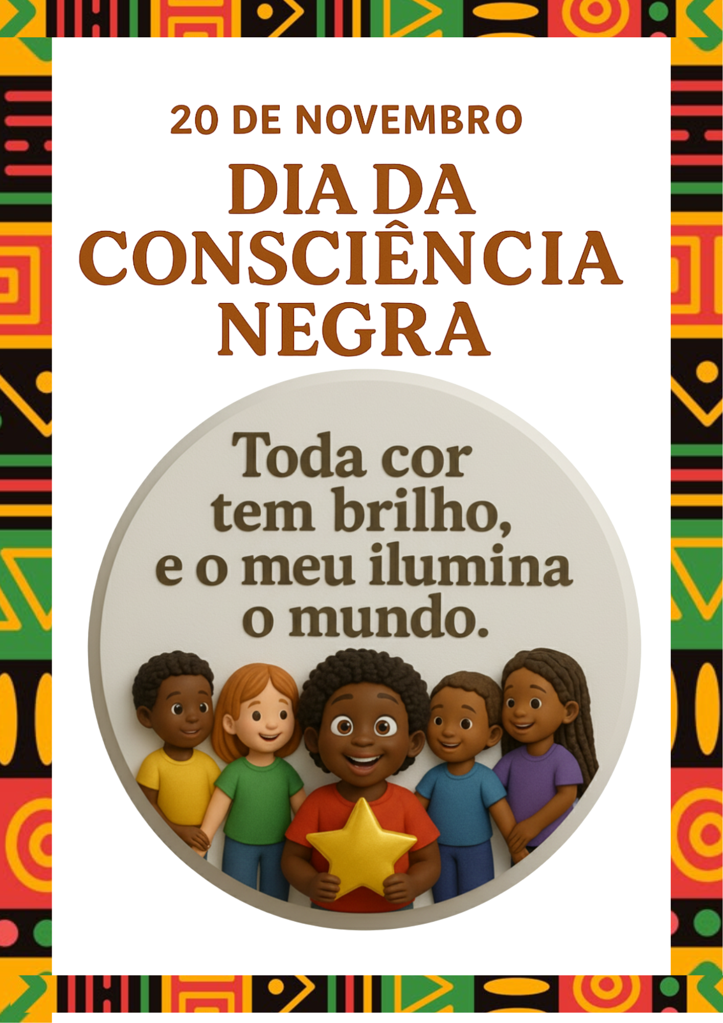 ⭐ Painel temático COM BORDA E SEM BORDA “Consciência Negra” – tamanho (9 folhas A4)