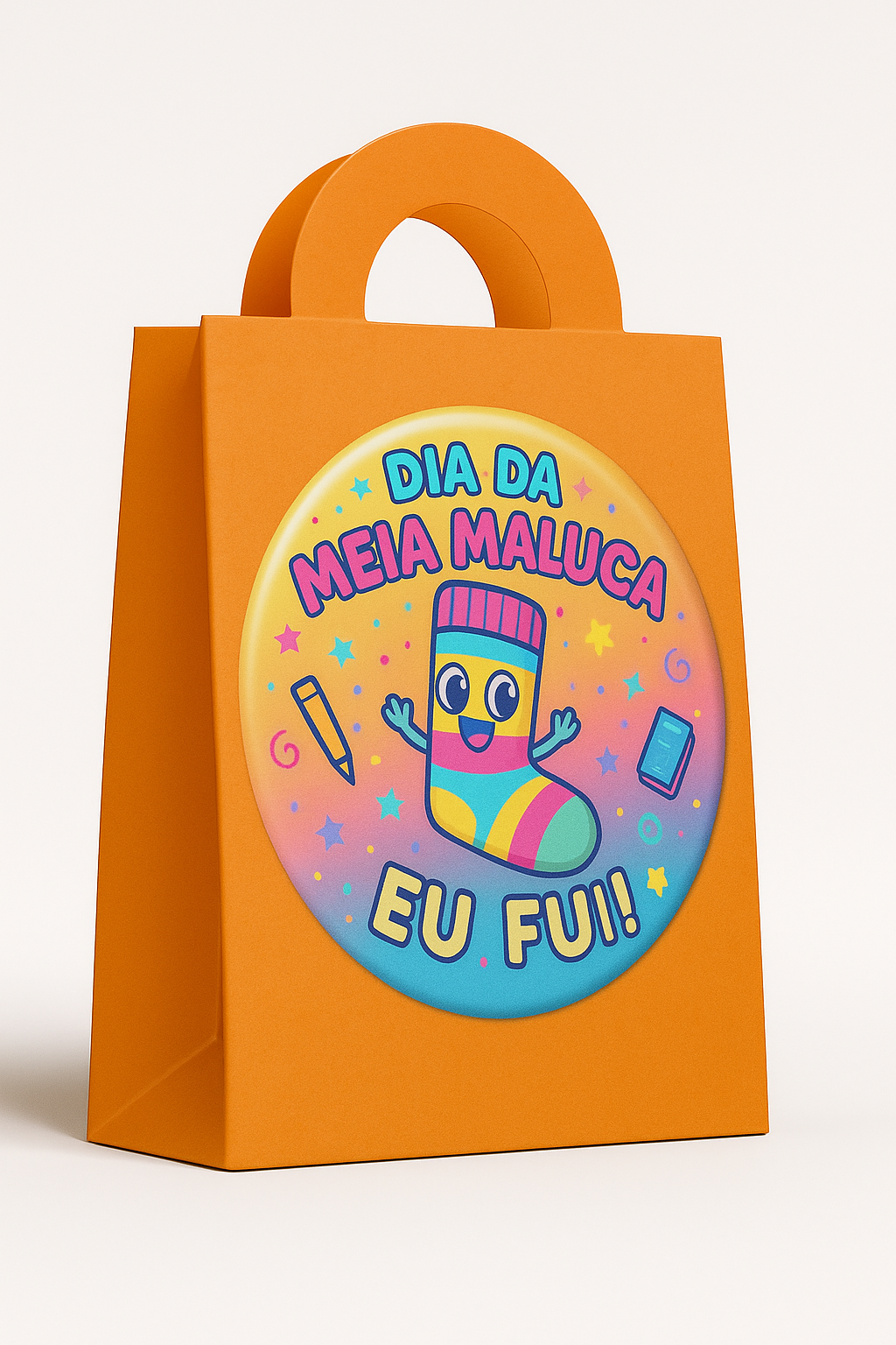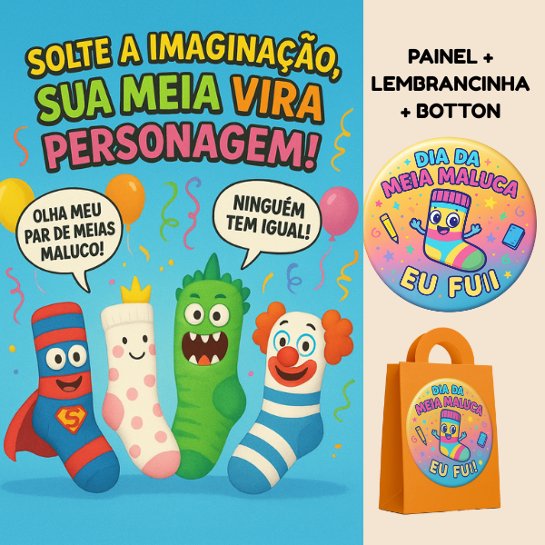 ✔️ Botton “Eu Fui” – cada criança leva para casa um mimo exclusivo, registrando sua participação no Dia da Meia Maluca.