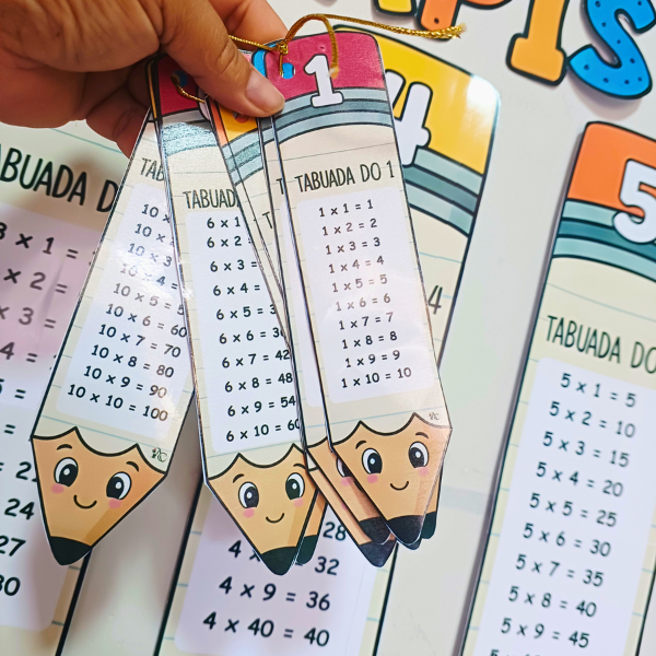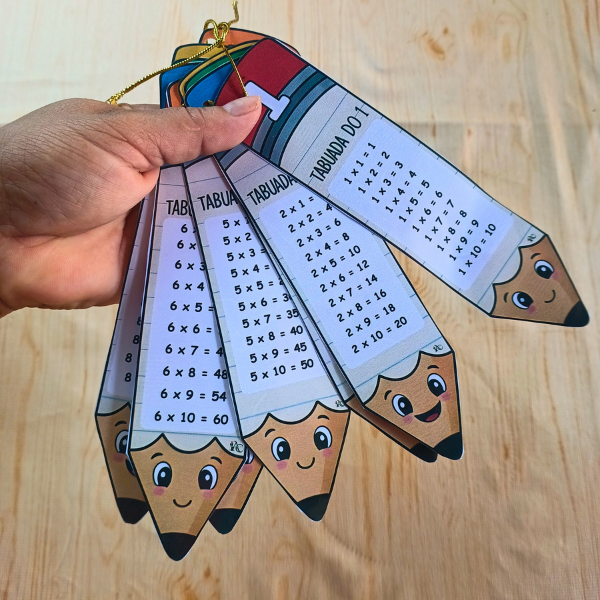 Chaveiro Tabuada dos Lápis – perfeito para os alunos levarem na mochila, usarem no estojo ou como lembrancinha pedagógica, reforçando a tabuada em qualquer lugar!