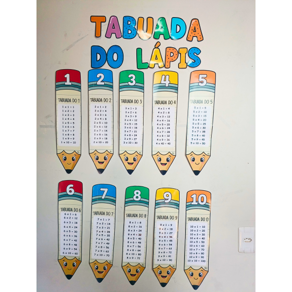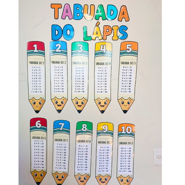 O Painel Tabuada dos Lápis foi criado para auxiliar os alunos na aprendizagem da tabuada do 1 ao 10, de forma lúdica e organizada, trazendo lápis coloridos que despertam a atenção e facilitam a memorização dos cálculos.