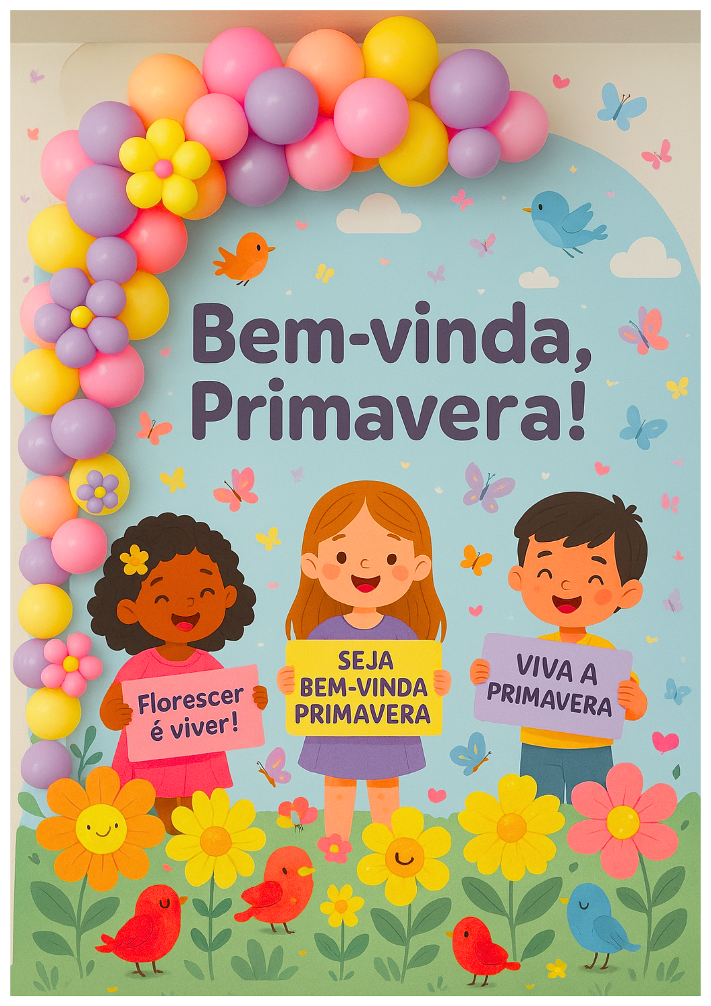 Apresente sua sala de aula com ainda mais alegria com o Painel “Bem-vindo, Primavera” – um material lúdico, vibrante e repleto de detalhes que encantam crianças e professores.