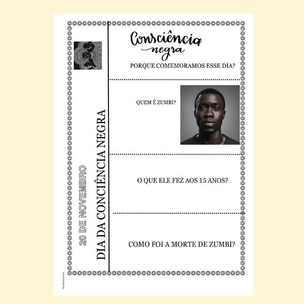 💛 Um projeto completo, pronto para imprimir e aplicar, que une arte, leitura, cultura e valores — perfeito para trabalhar o Dia da Consciência Negra com sensibilidade e propósito!
