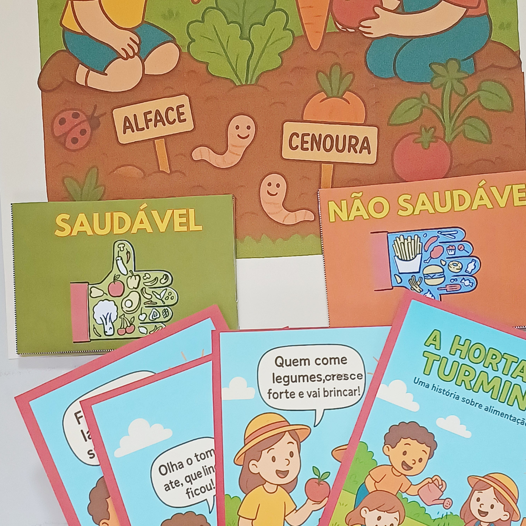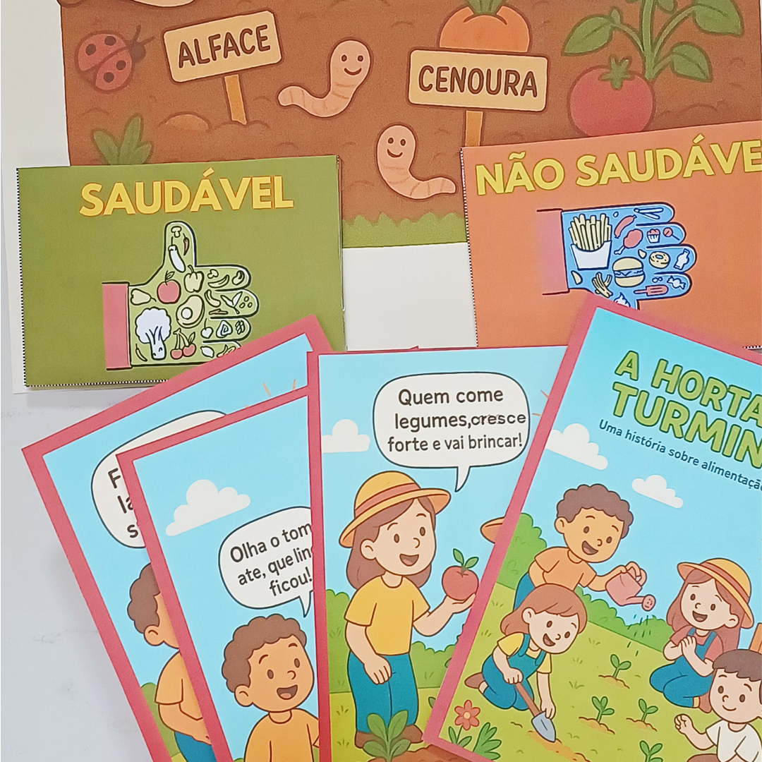 ✅ História original “A Horta da Turminha” (texto rimado + ilustrações)